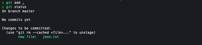 커밋에 들어간 파일들은 앞으로 tracked file로 추적,관리 대상이 된다.