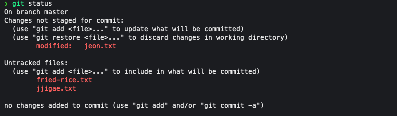 git status를 통해서 tracked file / Untracked file 상태를 확인할 수 있다.