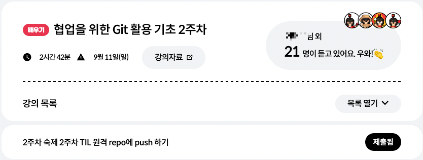 | 협업을 위한 GIT 개발일지 - 1주차 (1) Git 시작하기 (2) | 2022.09.15 |