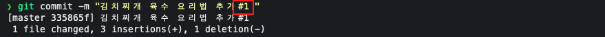 commit 메세지에 #숫자 issue 번호를 함께 적어주면 GitHub에서 자동으로 연동이 된다.